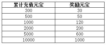 【活动内容】活动期间,累计充值达到指定充值数量即可获得额外元宝返利。