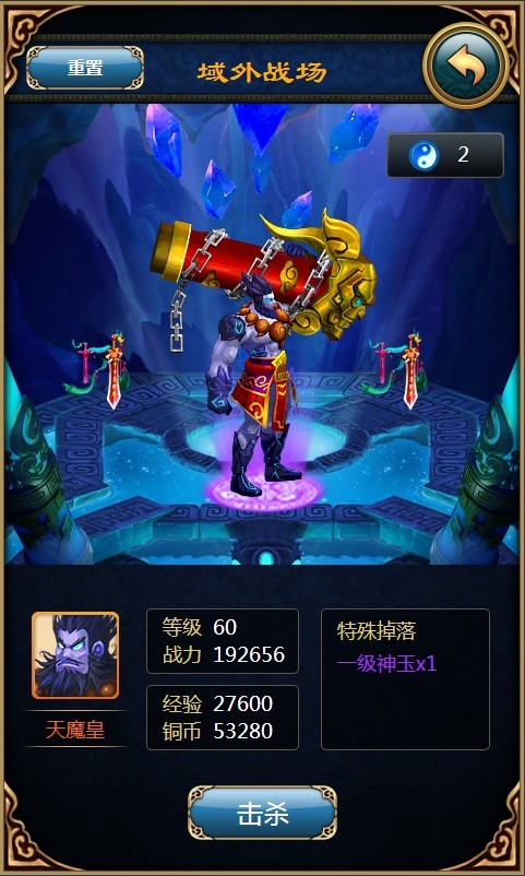 域外战场中怪物每日刷新一次,怪物等级随着玩家等级提高而提高,等级越高,掉落灵石的几率也越高。战场中怪物分为绿蓝紫称四种颜色品质,怪物品质越高,则奖励越高,而掉落的灵石品质也越好。